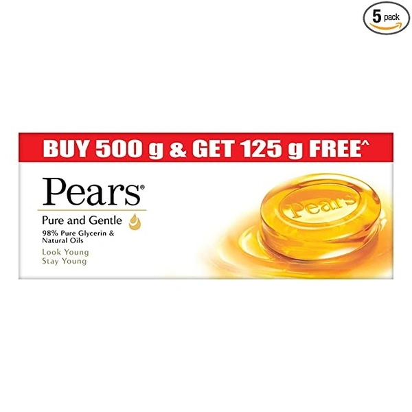 Pears Pure & Gentle Moisturising Bathing Bar Soap with Glycerine For Golden Glow 125g (Pack of 5)